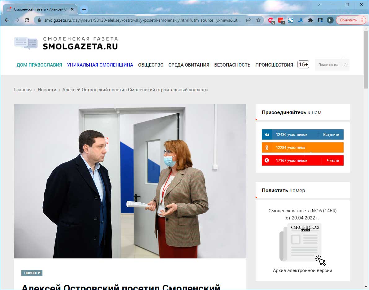 Алексей Островский посетил Смоленский строительный колледж