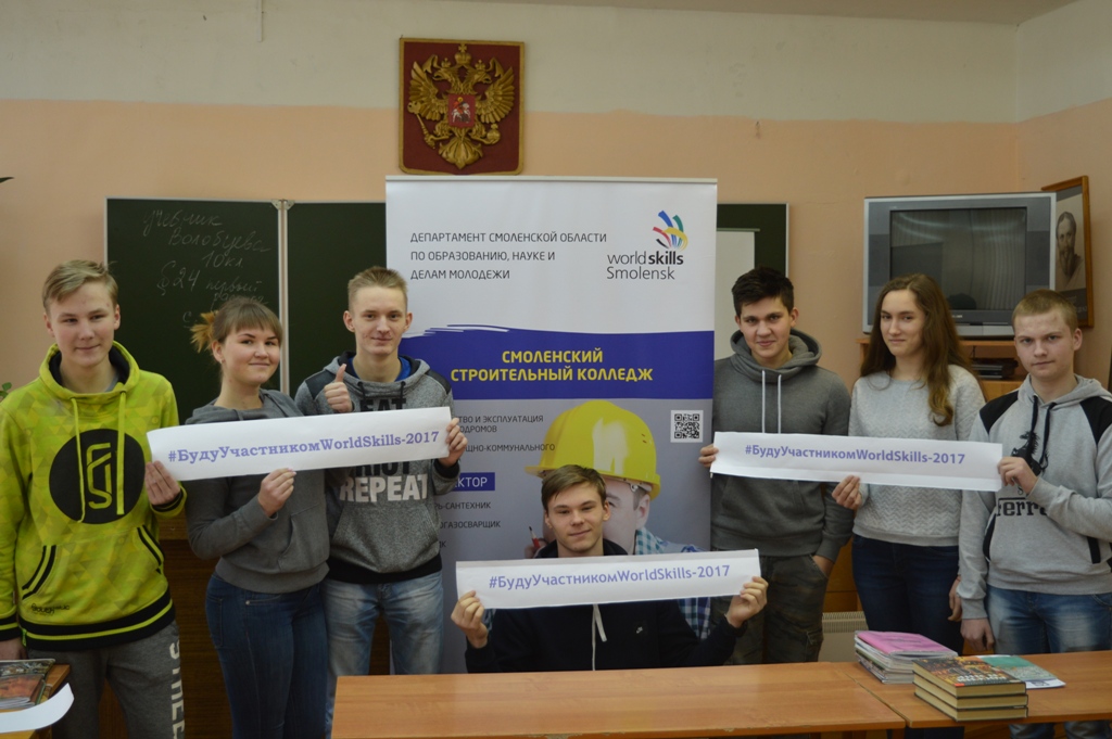 В рамках подготовки ко II Открытому региональному чемпионату "Молодые профессионалы" (WorldSkills Russia) Смоленской области обучающиеся ОГБПОУ "Смоленский строительный колледж" провели селфи-акцию "Буду участником WorldSkills-2017". Студенты с удовольствием и воодушевлением выразили инициативу участвовать в чемпионате не только в качестве участников, но и в качестве волонтеров.